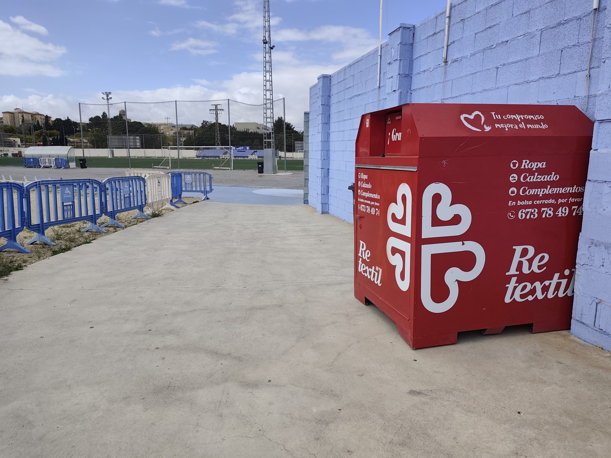 El contenedor, ubicado en el recinto deportivo, permitirá recoger ropa, calzado y textiles que Cáritas destinará a sus programas de apoyo a familias en situación de vulnerabilidad, así como a proyectos de reutilización y reciclaje que fomentan la sostenibilidad y la economía circular.